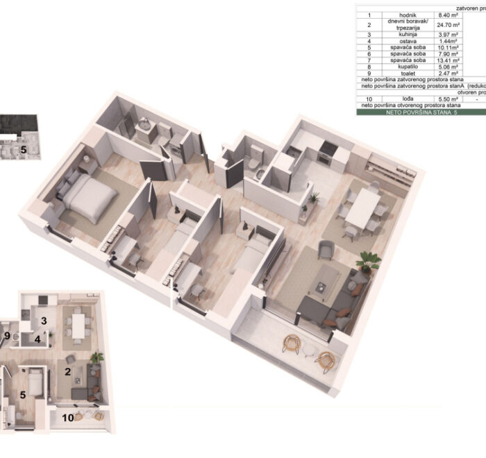 Svaki kvadrat je pažljivo osmišljen kako bi pružio maksimalnu udobnost, praktičnost i prijatan ambijent za svakodnevni život.